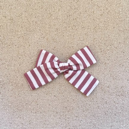 Le grand noeud est en coton rayé vieux rose , il mesure environ 9,5 cm .