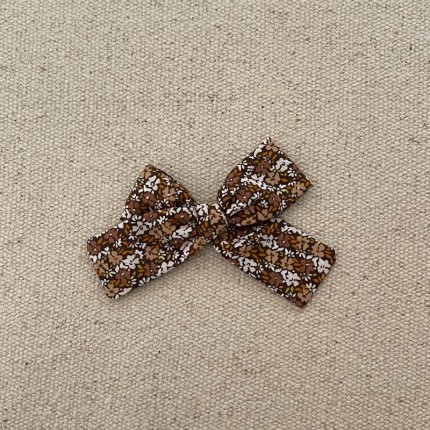 Le noeud est en coton camel avec des petits coeurs , il mesure environ 9,5 cm .