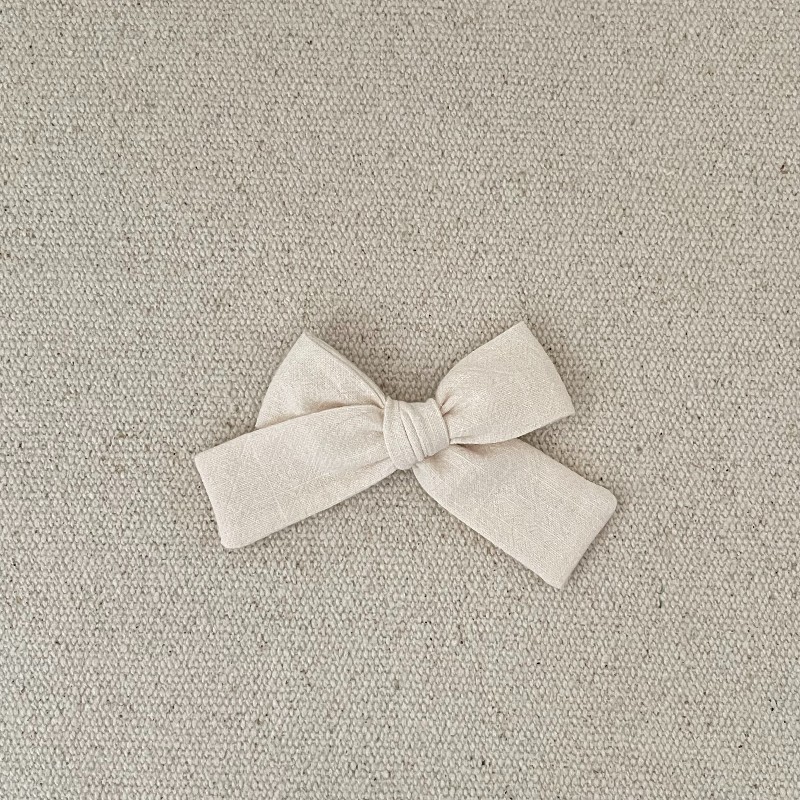 Le noeud est en coton lavé écru , il mesure environ 9,5 cm .