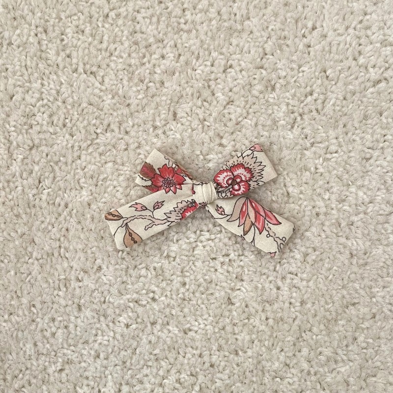 Le noeud est en coton imprimé floral , il mesure environ 8 cm .