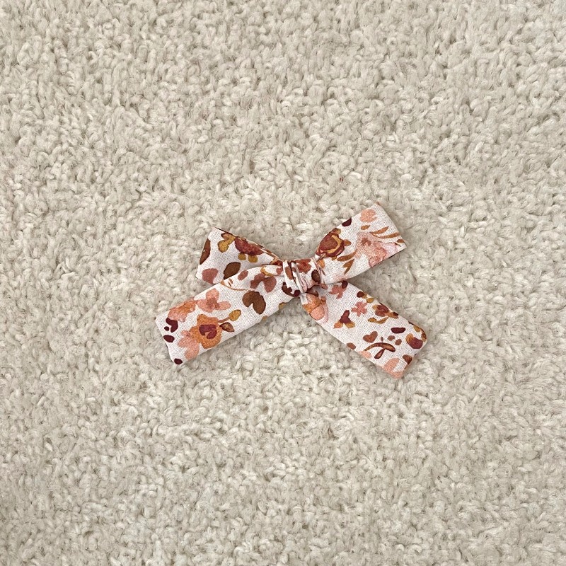 Le noeud noué est en coton avec des petites feuilles , il mesure environ 8 cm .