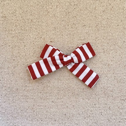 Le noeud noué est en coton rayé caramel , il mesure environ 8 cm .